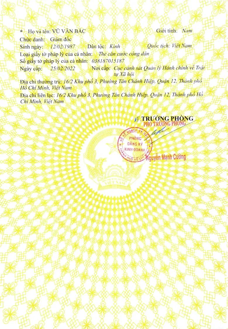 Địa chỉ: 16/2 TCH 25, Khu phố 3, phường Tân Chánh Hiệp, Quận 12, thành phố Hồ Chí Minh.